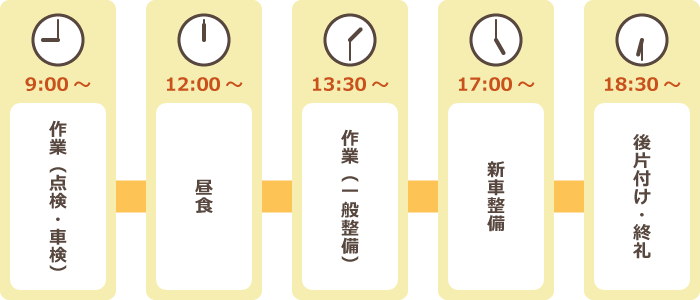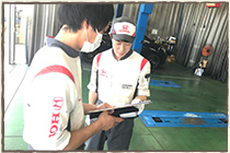 点検、車検、一般整備を主に行っています。少し難しい作業や診断など、先輩方からアドバイスをいただきながら日々の業務を頑張っています。